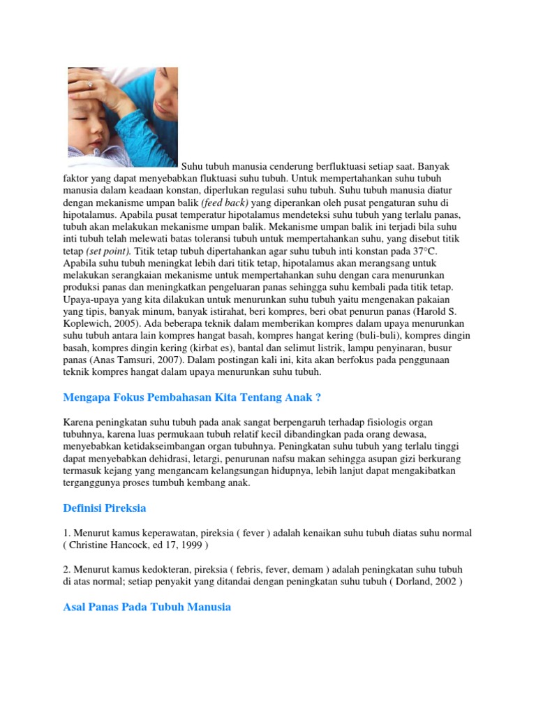 Suhu tubuh yang normal adalah mendekati suhu tubuh inti yaitu sekitar 37 0 c.